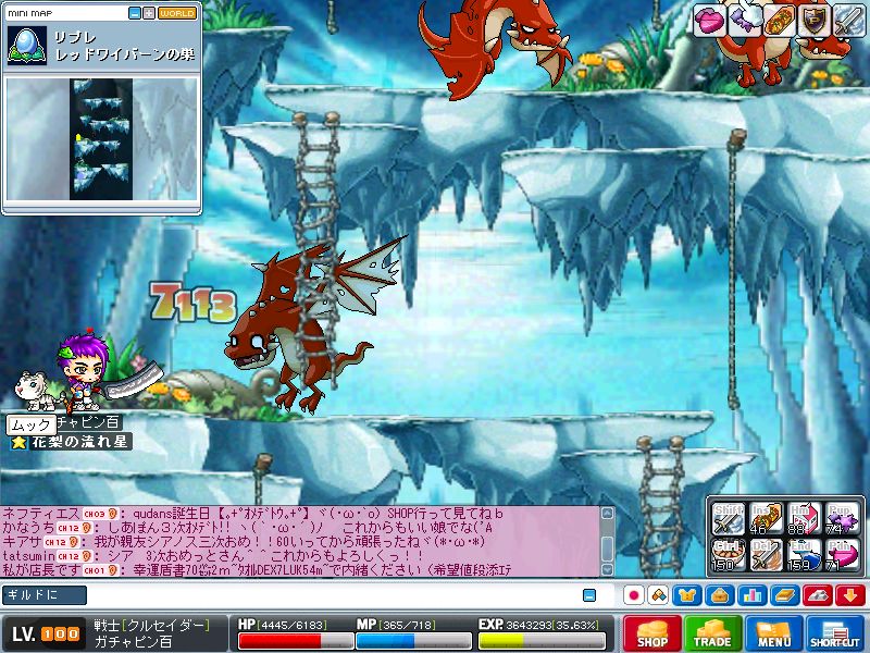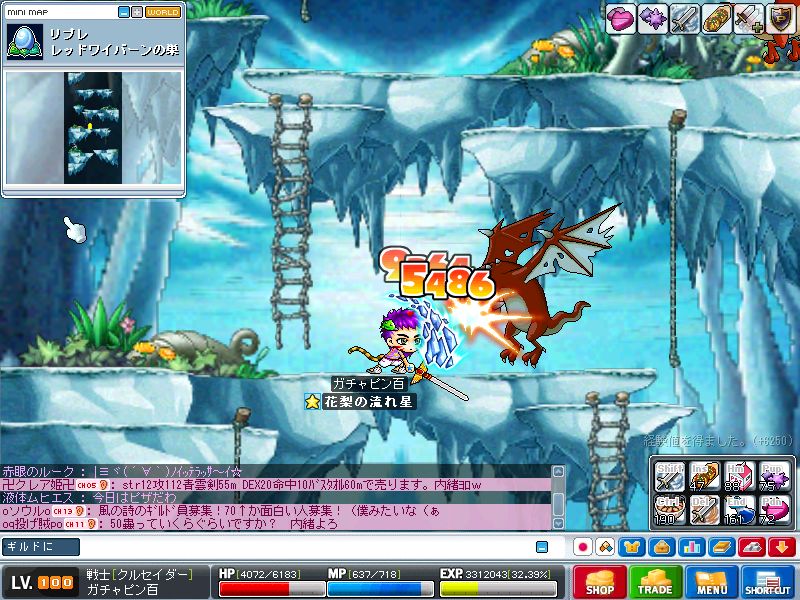 ちょっと赤いけどおかげで午前中には100レベになりましたbb